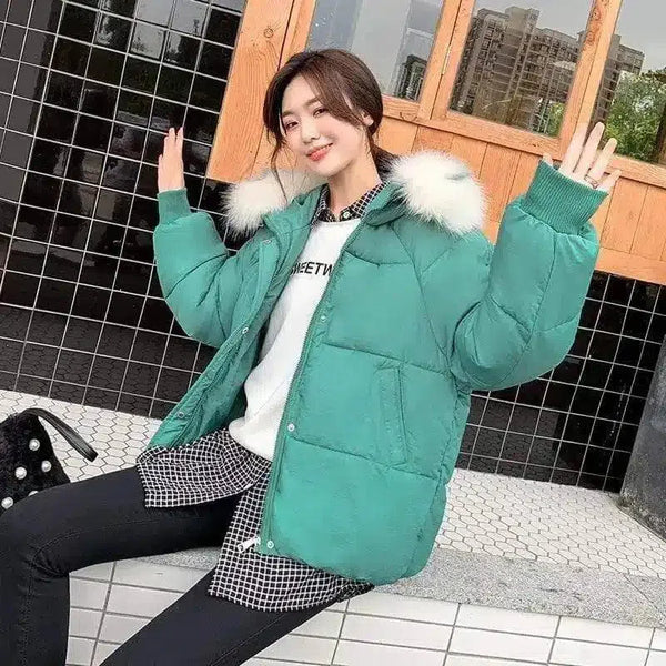 Jaqueta acolchoada de inverno com capuz com acabamento em pele