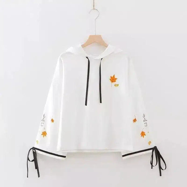 - Detalhes do design: Motivo de folhas de outono bordadas nas mangas e no peito