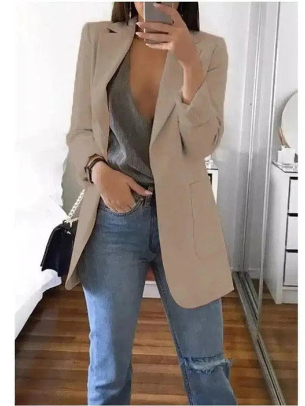 Blazer de ajuste personalizado feminino e combinação de jeans casual