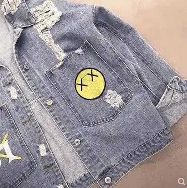 - Características de design: Patches gráficos em negrito e detalhes desgastados