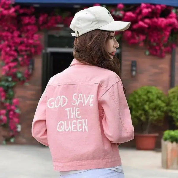 outono solto Jaqueta BF Harajuku com estampa de vento manga longa
