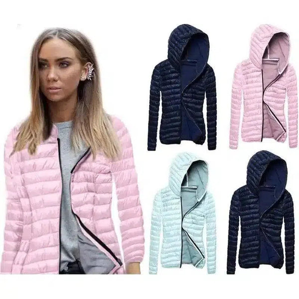 Jaqueta Puffer com capuz e leve para mulheres