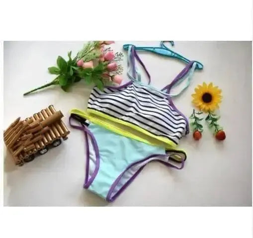 Conjunto de biquíni com decote alto e patchwork Conjunto de biquíni maiô