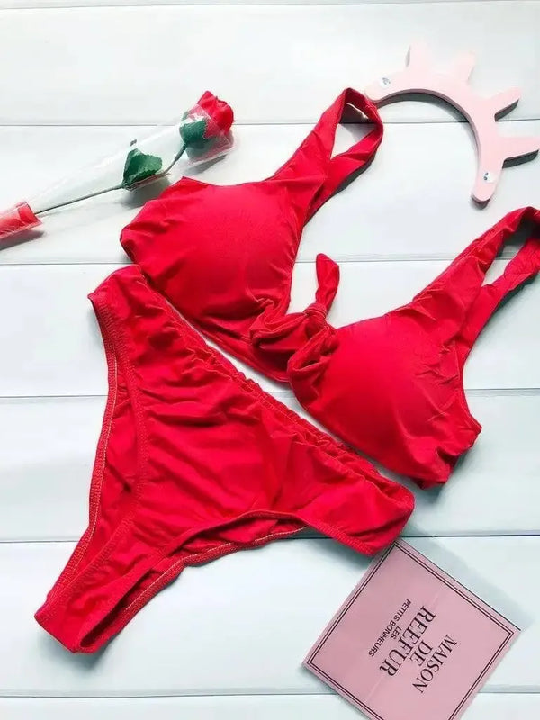 - Design: Conjunto de biquíni com gravata elegante