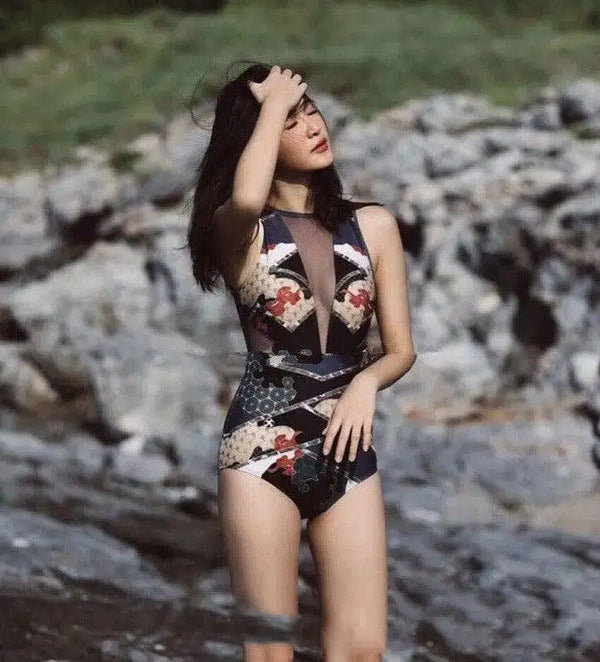 - Design: Elegante maiô de uma peça inspirado nos motivos culturais do sudeste asiático.