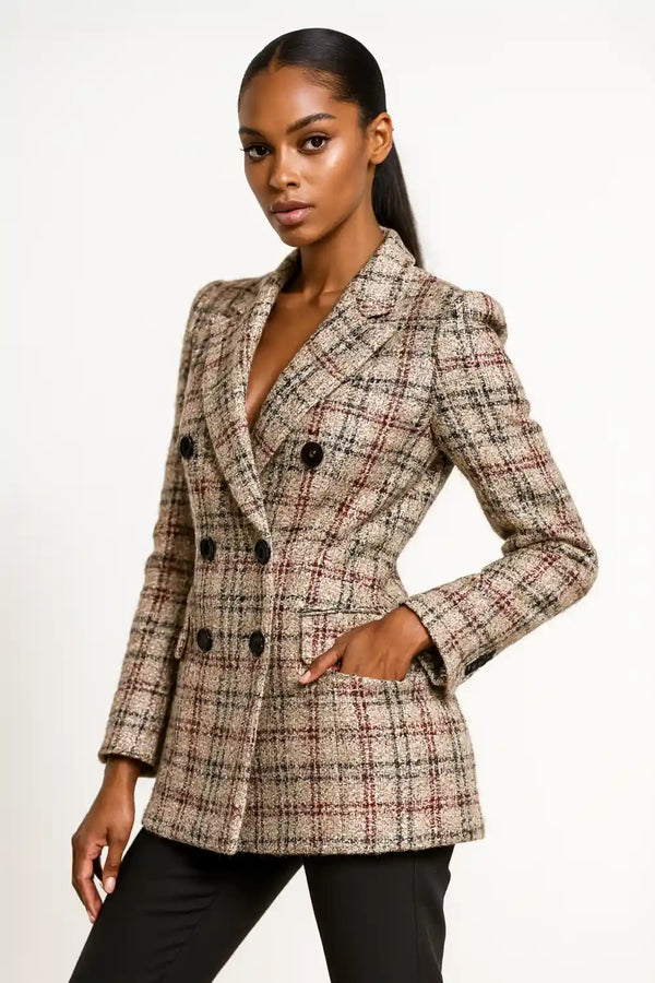 Blazer de textura xadrez para mulheres