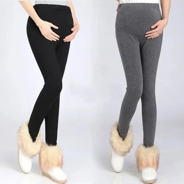 Calça de inverno mais espessa e de veludo para mulheres grávidas
