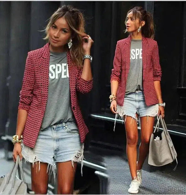 Conjunto feminino de blazer casual e bermuda jeans