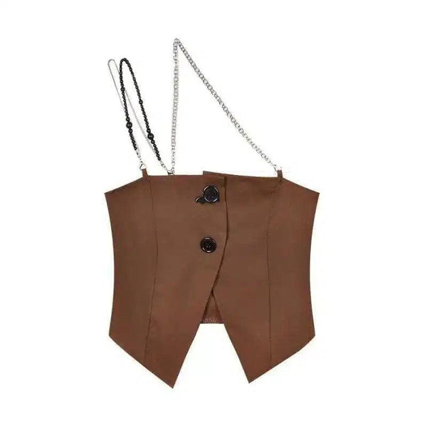 - Detalhes adicionais: Apresenta um detalhe de alça de corrente e fechamento frontal com botões duplos