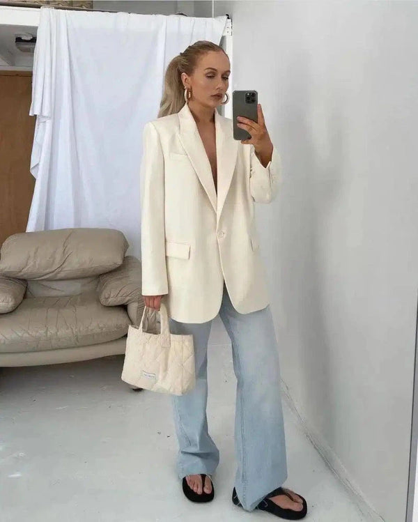 Blazer de alfaiataria e jeans de perna larga para mulheres
