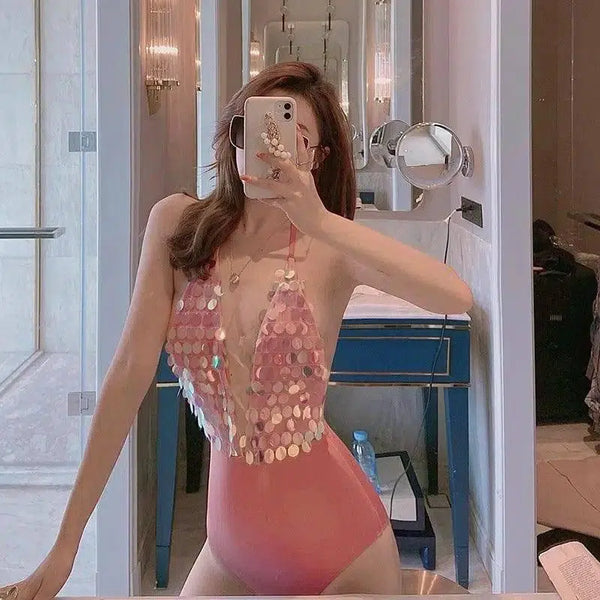 Sem Costas com Lantejoulas V Profundo Recolhido Moda Halterneck