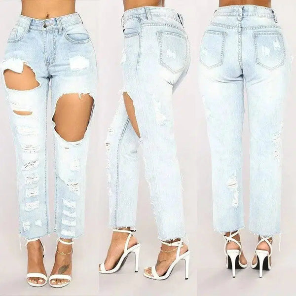 - Detalhe do design: Furo grande e chamativo para um visual moderno e desgastado