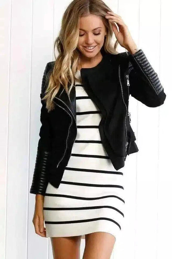 Jaqueta de camurça de couro sintético com emendas para mulheres Moto Coat preto Punk