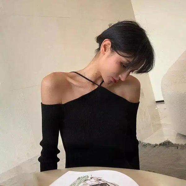 Suéter de tricô com nervuras sem ombros