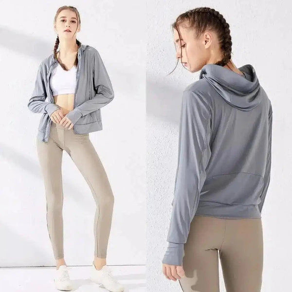 Jaqueta feminina com capuz e zíper para uso casual