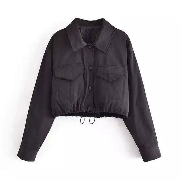 Essa jaqueta cropped combina estilo e conforto, perfeita para ser usada em camadas em qualquer estação.