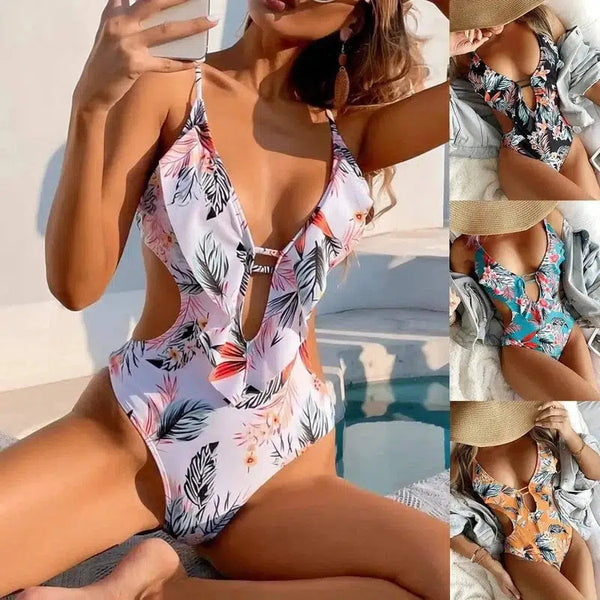 Descrição do produto: Maiô Triangle One Piece Leaf Print Ruffle