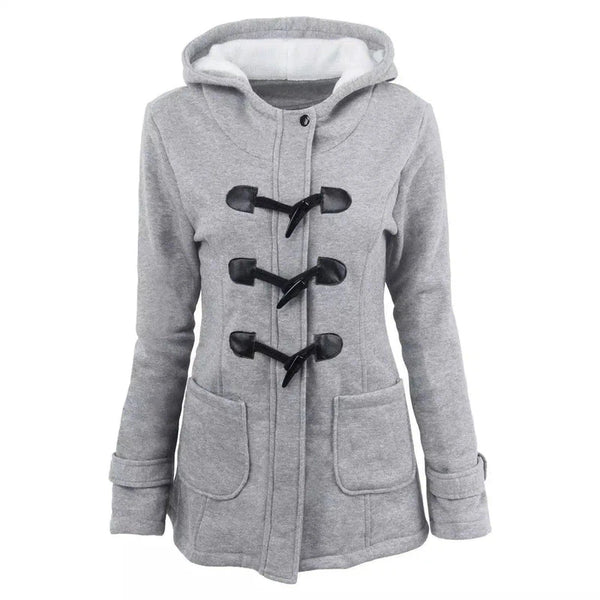 Jaquetas quentes de inverno com gola de pele para mulheres, novas jaquetas com botões de chifre Longas