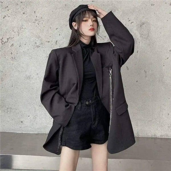 Terno de outono casual solto, branco e preto, com tudo combinado