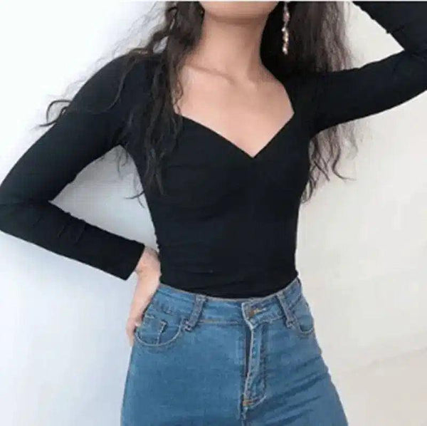 Blusa feminina de manga longa com decote em V