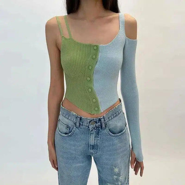 - Tipo de peça: Top cropped de manga longa em dois tons