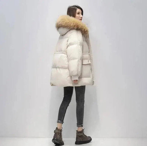 Jaqueta Puffer de inverno com capuz de pele sintética