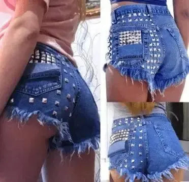 Calças jeans rasgadas femininas, shorts largos, calças quentes com rebites