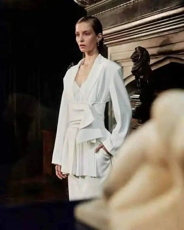 - Ajuste: Ajuste sob medida, com cintura marcada e silhueta alargada