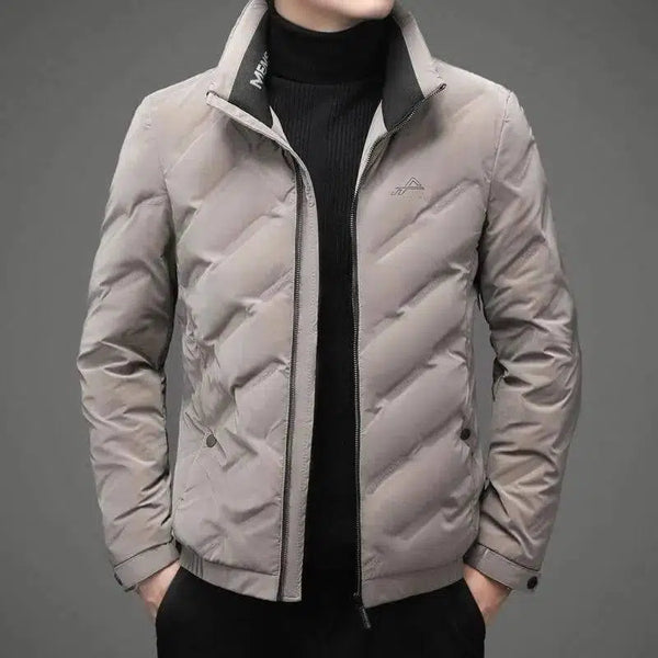 Jaqueta juvenil de plumas com lapelas curtas e acolchoadas para manter a tendência de aquecimento