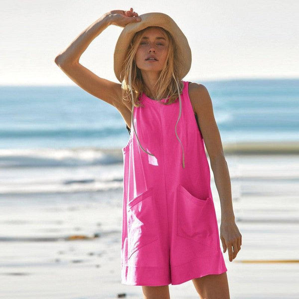 O macacão fraco da cor sólida com bolsos forma o rosa do verão/L