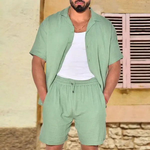 Terno masculino de duas peças em linho, algodão, casual, solto e elástico