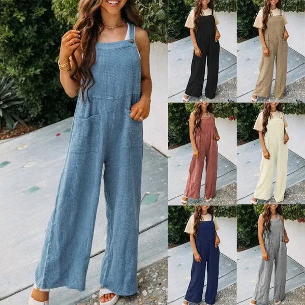 Moda Macacão de gola quadrada com bolsos Primavera Verão Casual Cor sólida Macacão solto Roupas femininas
