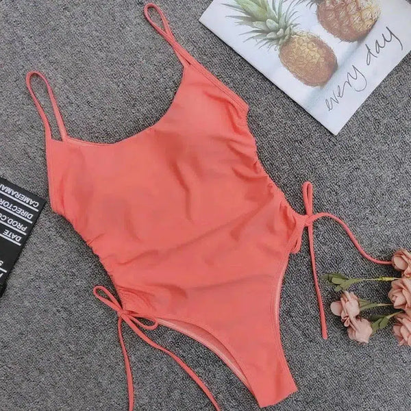 Maiô de uma peça Euro-americano sólido de garfo alto ajustável