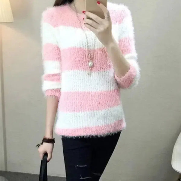 Suéter feminino Suéter solto de gola redonda Pulôver de fundo