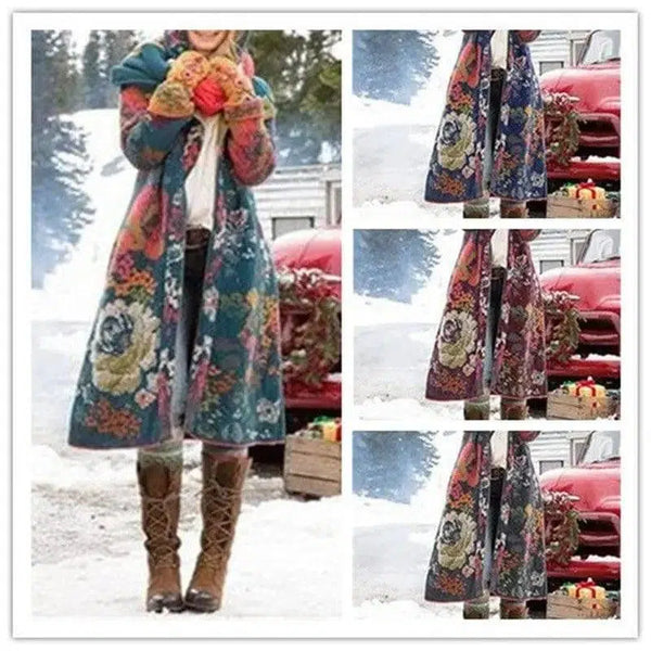 Descrição do produto: Estilo de corte feminino impresso de comprimento médio com capuz grosso