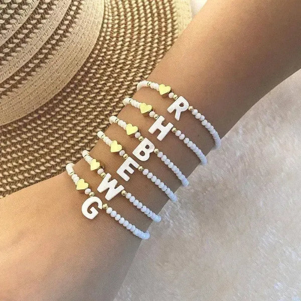 26 Letters White Shell Beaded Bracelet Women Metal Love Design Bracelet Jewelry