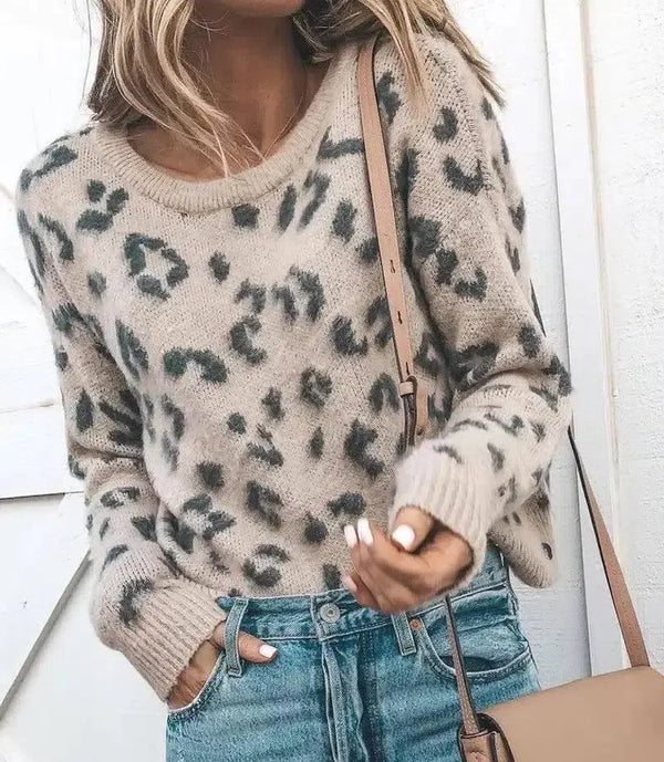 Suéter Suéter de malha Suéter com estampa de leopardo Suéter feminino