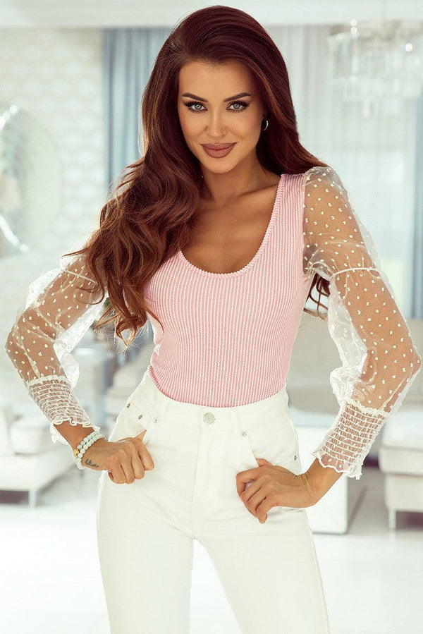 Swiss Dot Striped Scoop Neck Bodysuit