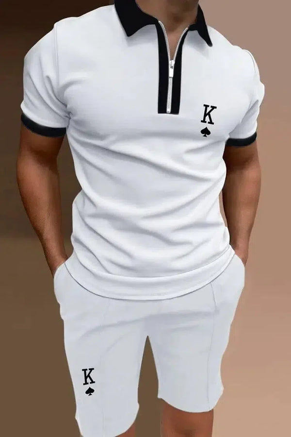 Terno masculino casual com lapela e zíper de duas peças