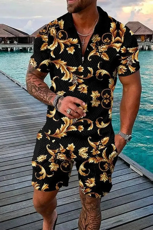Descrição do produto: Terno masculino com lapela estampada e zíper de duas peças