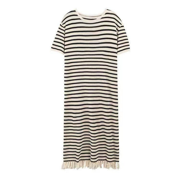 Vestido de tricô preto listrado Vestido feminino de manga curta Vestido maxi dress