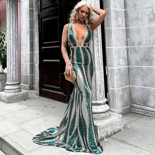 Descrição do produto: Vestido de noite listrado irregular de cauda longa com suspensório