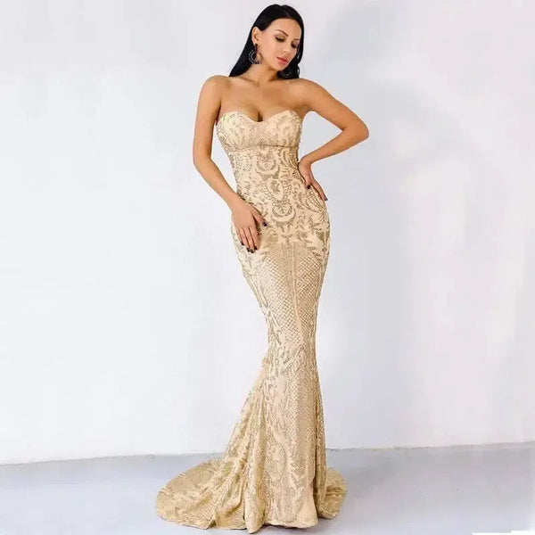 ELEGANTE VESTIDO DE NOITE GEOMÉTRICO SEM ALÇAS