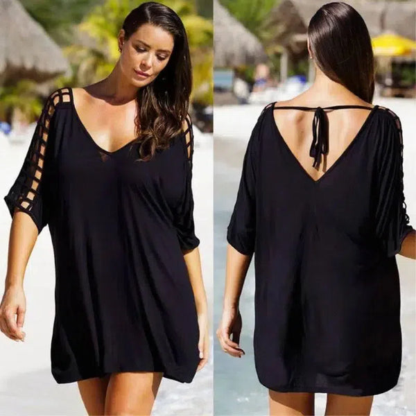 Verão Plus Size M a 3XL Cover Up Women Swimwear Beach Blouses Women Bikini Beach Wear Cover-Up Black Dress