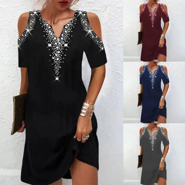 - Estilo: Vestido feminino com um design moderno de ombros caídos