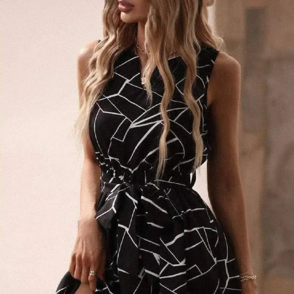 - Estilo: Vestido feminino sem mangas com design estampado da moda