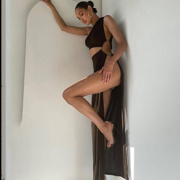 Vestido Digno de Ombro Inclinado Oco para Mulheres