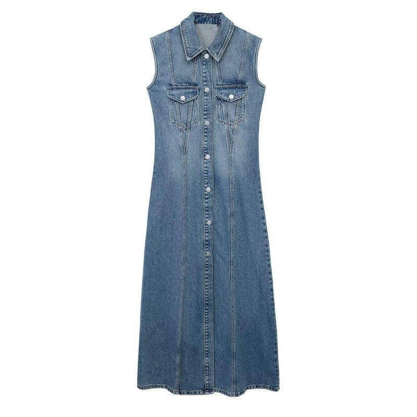 Vestido jeans feminino com botões na frente