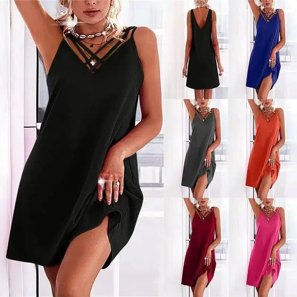 Vestido feminino sem costas com sling e top de tanque cruzado